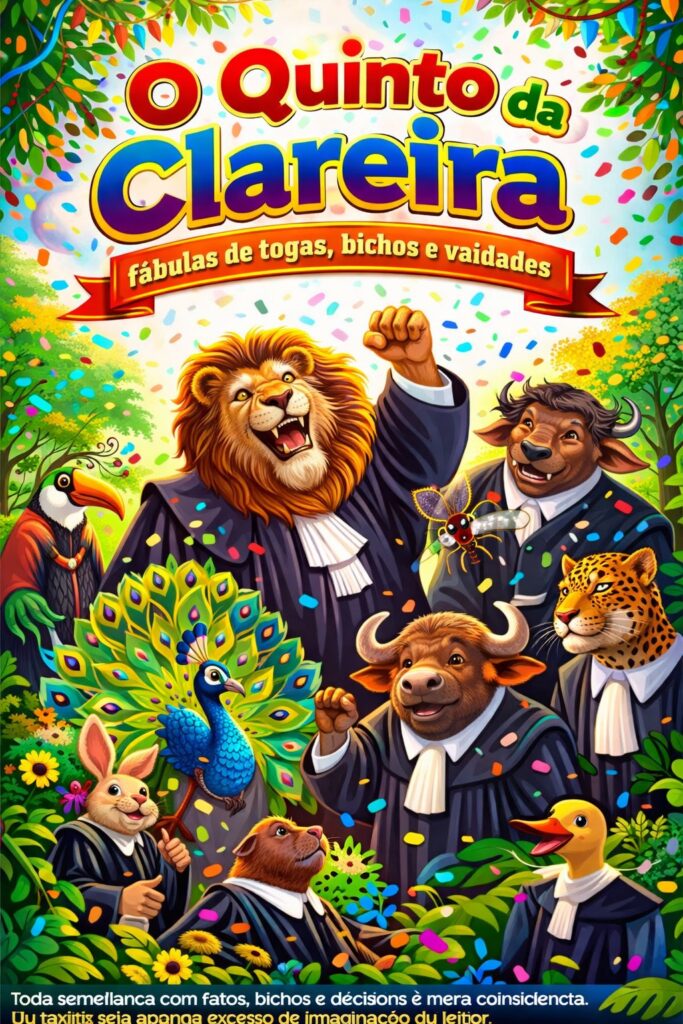 Toda semelhança desta história com fatos, personagens, acontecimentos, decisões, reuniões, disputas institucionais, bichos conhecidos da floresta ou criaturas que circulam entre galhos, tribunais e palácios é mera coincidência, ou talvez apenas excesso de imaginação do leitor. Esta é uma obra de ficção fabulística, construída no velho estilo das fábulas clássicas, onde animais falam, pensam, conspiram, filosofam, fazem política, criam teses jurídicas, sustentam memoriais e, vez ou outra, ainda tentam parecer imparciais enquanto escondem as garras debaixo da mesa.